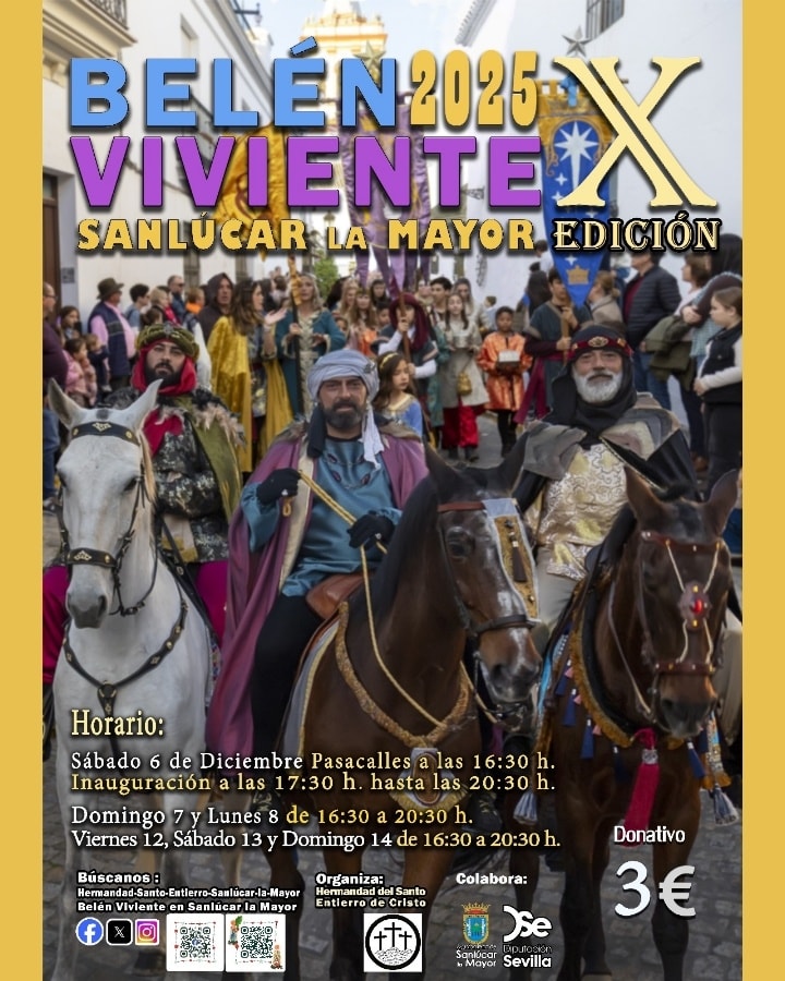 El Belén viviente de Sanlúcar la Mayor tendrá lugar los días 6, 7, 8, 12, 13 y 14 de Diciembre de 2025.