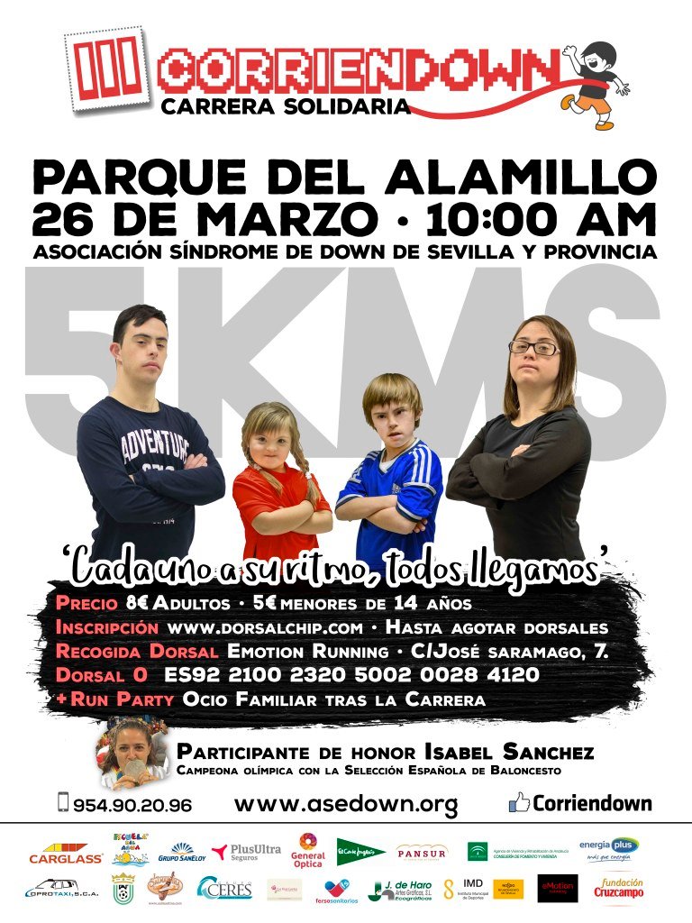 Para conmemorar el Día Mundial del Síndrome de Down, y en beneficio de la Asociación Síndrome de Down de Sevilla y Provincia, la entidad organiza su tercera edición de ‘Corriendown’. Un trayecto de 5 kilómetros en los que disfrutar de la marcha, el ambiente y el recorrido.