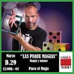 “Las peque magias! es una actuación ideada y desarrollada para los más pequeños de la casa. Durante toda la actuación los niños y niñas disfrutarán de la magia, formando parte del espectáculo y transformándose durante unos minutos en auténticos magos. Cada actuación es diferente y se adapta a la edad de los espectadores. Los más pequeños alucinarán con las distintas apariciones y desapariciones de objetos, los líquidos mágicos o las chucherías mágicas. ¡Ven a disfrutar de la Magia y el humor con Paco el Mago!