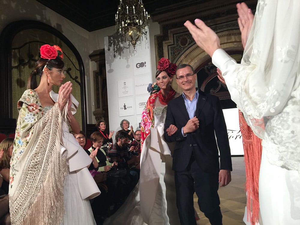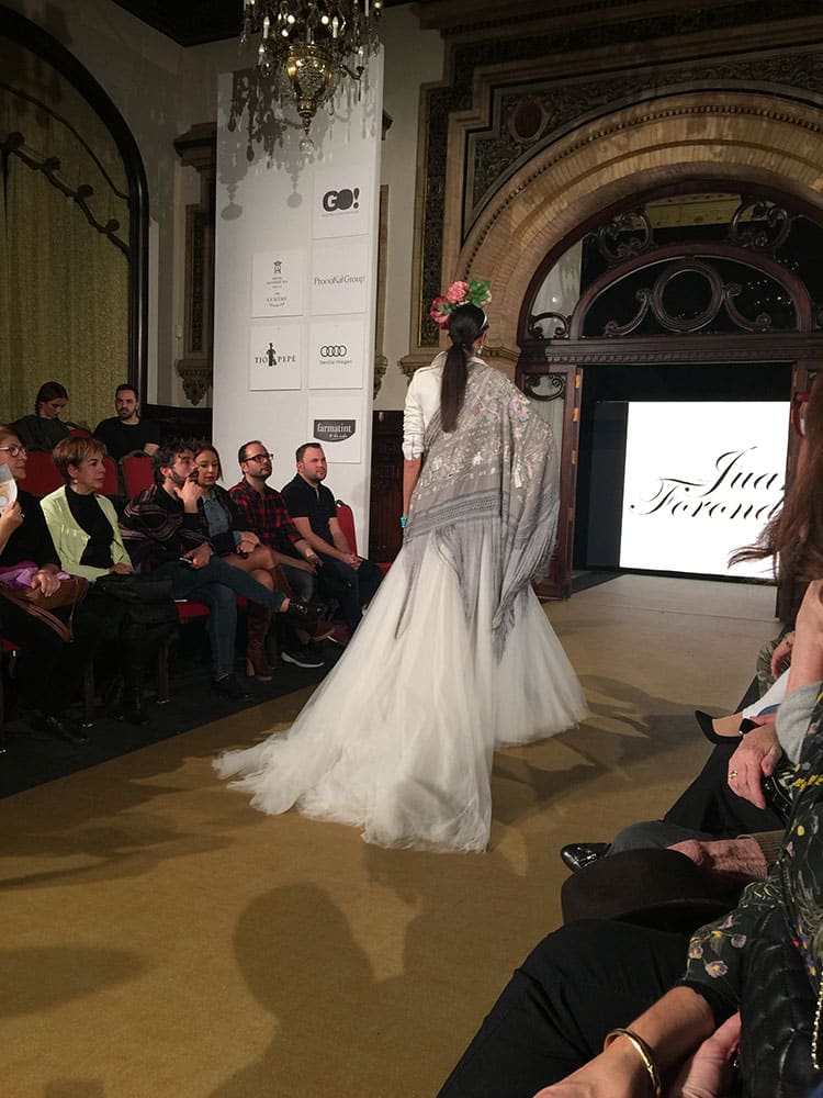 Juan Foronda cerró la V edición de We Love Flamenco junto con los desfiles de Rocío Peralta, Sánchez Murube. Es su primer año en esta pasarela de WLF17. Y su estreno estuvo acompañado por distintas personalidades entre ellas el diseñador Tony Benítez. EN su colección llamada “Primavera Floral” pudimos disfrutar con una gran variedad de mantillas y mantones. Todos de un gusto exquisito y una calidad extraordinaria con el que la mujer andaluza dio una muestra de modernidad y tradición, modernidad por la colaboración de Roberto Diz.