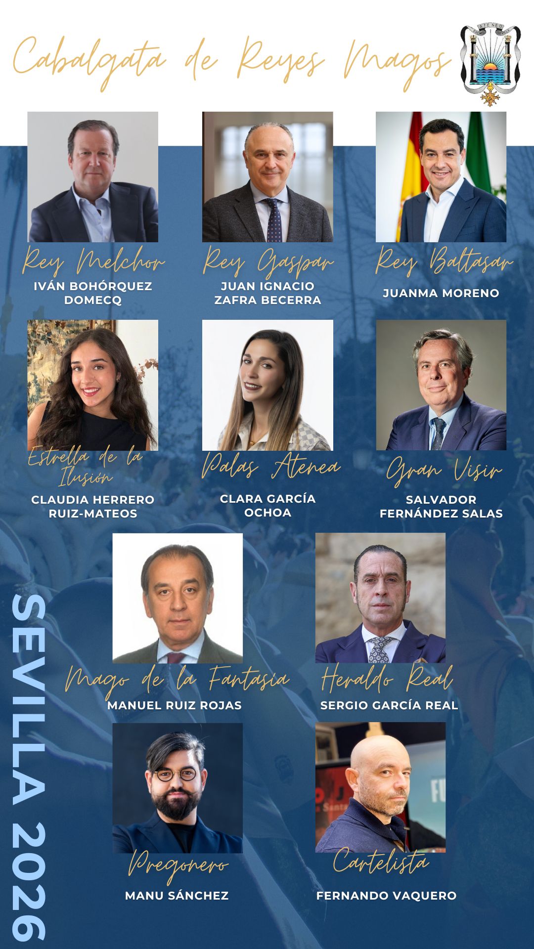 El Cortejo de la Cabalgata de los Reyes Magos del Ateneo de Sevilla 2026 es el siguiente:
